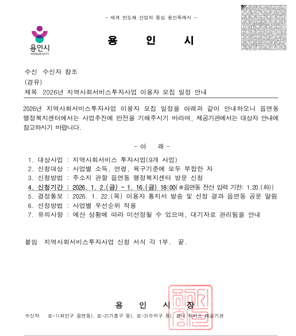 2026³â Áö¿ª»çȸ¼ºñ½ºÅõÀÚ»ç¾÷ ÀÌ¿ëÀÚ ¸ðÁý¾È³»